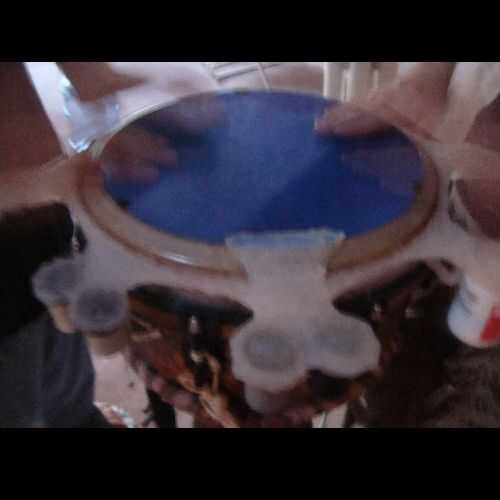 Tengo un buen Remo marca djembe con una cabeza de material sintético. Tenía una especie de ruido que quedaron después de cada golpe de llamada algo que no me gustó. Quería a una especie más profundo de la voz de tambor de selva más a él. Ambos de estos elementos se fijaron reclinando capas de materiales de película de radiografía azul en la cabeza del tambor original. Más capas, la más absorbente del anillo. Las capas de Ronda, fueron primero grabado juntos y luego se unió por una solapa de goma de silicona para el anillo exterior del tambor, por lo que podría ser utilizado con cualquier voz subiendo o bajando las capas por el puente flexible de silicona. Siempre parece que utiliza el sonido más profundo, aunque y eventualmente eliminar el puente de silicona, solo grabar las capas hasta la cabeza con cinta aislante.