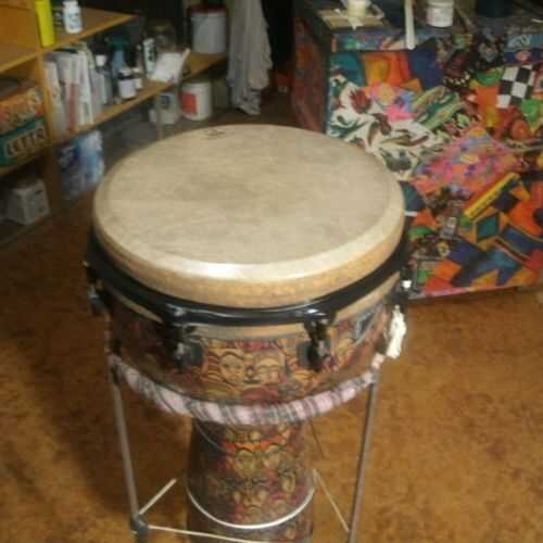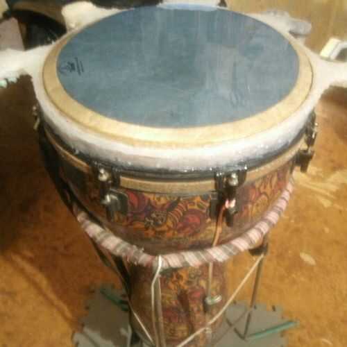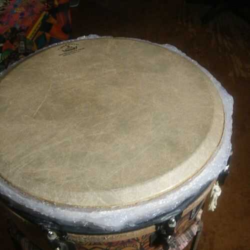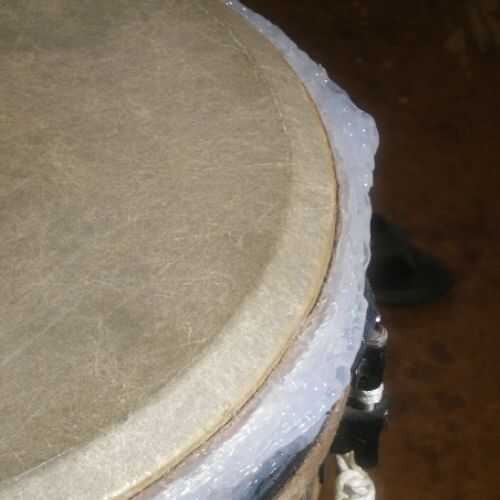 Una capa de material de película de rayos x sobre la cabeza del tambor a matar algunos de sonido llamada del tambor. Dos capas le mata más y así sucesivamente. El número de capas permite ajustar al gusto personal. Mina tiene cinco capas. Finalmente sólo graba las capas hacia abajo en la cabeza, que mantiene más segura durante el juego que hizo el puente de goma. La cinta se puede pelar hasta más tarde para eliminar las capas de la película.