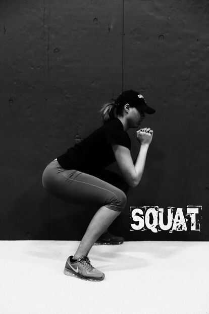 Alinear las rodillas más de pies--nunca dejarlos pasar al frente de los dedos del pie.