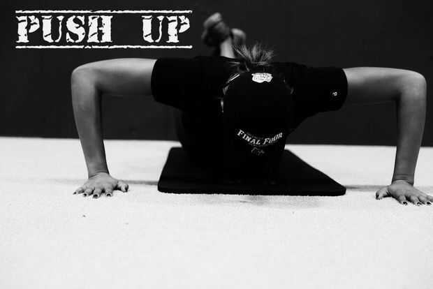 Modificación de Push-up, las rodillas están en la tierra.