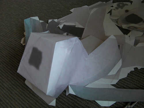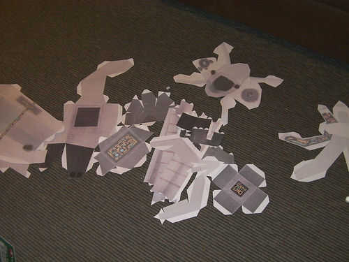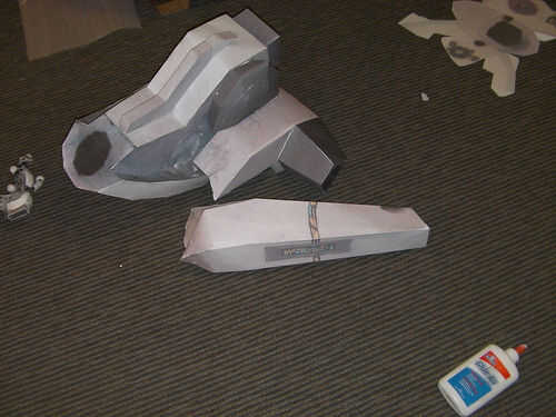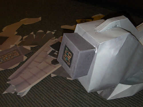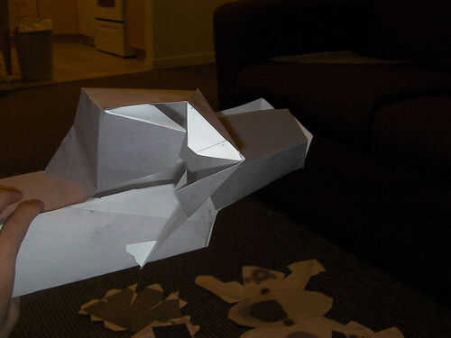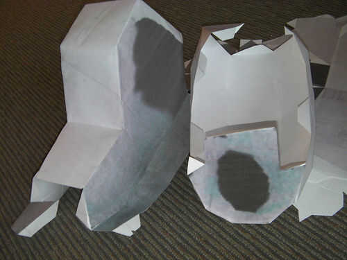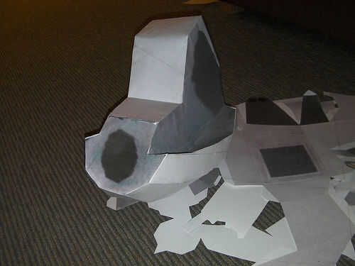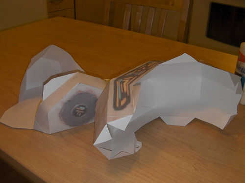 - Parte 34 y 35, 36, 37 son el cuello y la cabeza respectivamente. Pegar las partes 36 y 37 juntos, así que las dos mitades están conectadas y 36 descansa bien entre 37. Luego, pegue 35 en la parte inferior (sección curvada) de la cabeza, no directamente en el medio, pero algo en una inclinación. Finalmente, 34 a la parte plana de la cabeza y entonces usando pegamento caliente del pegamento, conectar la cabeza con el cuerpo ya terminado.