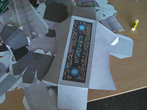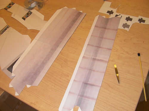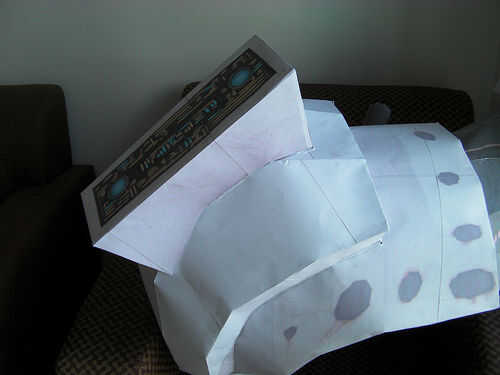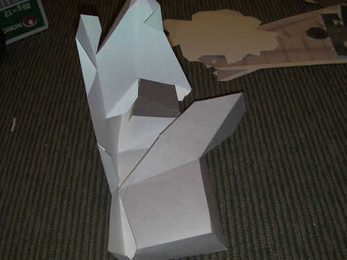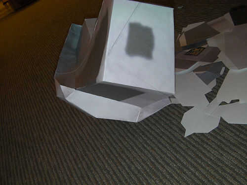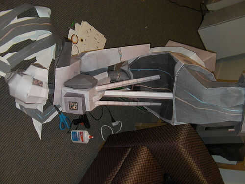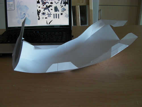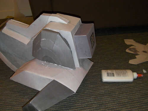 - Pegar los productos finales del paso 5 con el paso 2, para que la estructura de la "canoa" quede debajo y la parte superior de la parte 20 se pega a la parte posterior delgada de 23.