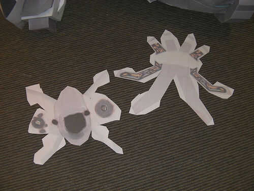 - Partes 31-33 son los conectores de tubo, que unen la parte inferior del abdomen a la parte superior del abdomen. Comenzar pegando la parte inferior del cuerpo a la parte superior del cuerpo medio, parte 17 (conector cuerpo) uso de Elmer y pegamento caliente. Entonces, después de que termines doblar hacia fuera las diferentes tuberías, pegamento partes 31-33 para que puedan formar un puente entre las dos mitades.