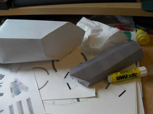 4. Una vez que haya terminado con la mano y los brazos, volver a la parte 40 y pegamento que a la parte superior derecha de la parte superior del cuerpo usando Pegamento caliente solo (toma de Elmer demasiado tiempo para este paso).  Partes 38 y 39 son para conectar este pedazo hasta el fondo a la parte inferior del abdomen.