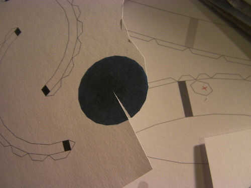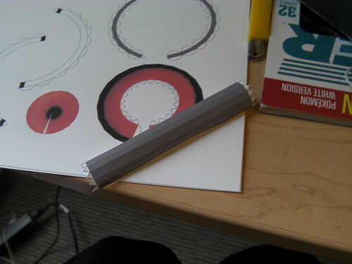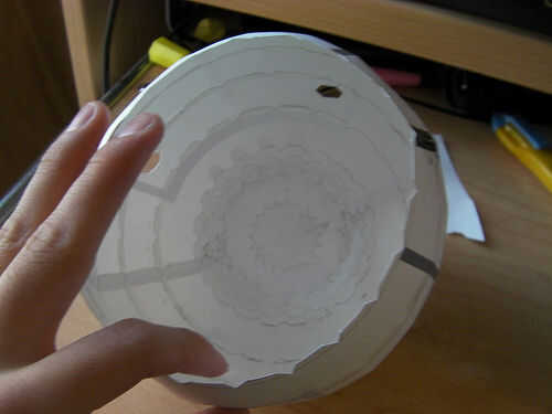 El paso solamente difícil de esta versión, posiblemente, es poder cortar las secciones individuales en la tercera franja, para que los tubos pueden caber a través de la bola. Usé un cuchillo Xacto, y no demasiado duro.