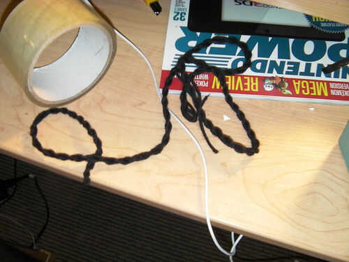 Oh y por último paso. Para verdaderamente hacer GLaDOS como ella es totalmente robótica, agregué algunos colgante hilo negro para que se vea como los cables. También puede visitar mi E-Z Kirby Epic hilados Instructable para una guía sobre cómo envolver hilo grueso juntos.
