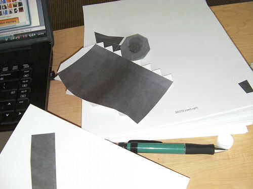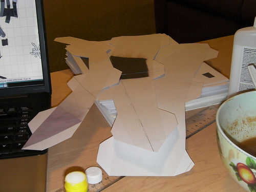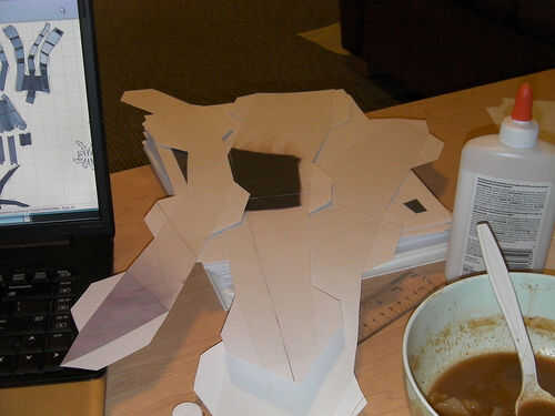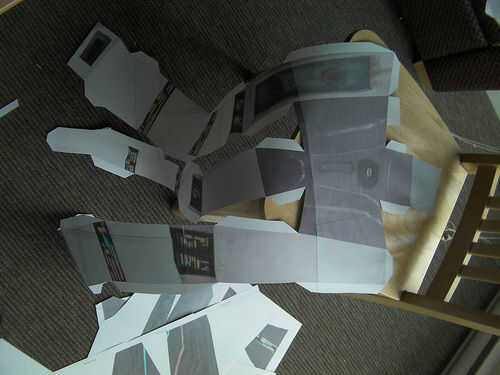 Puesto que todo lo la escala en 220% en pepakura, todas las piezas para el papercraft son ahora en partes separadas, y es este paso para conectarlos juntos. Pasé alrededor de un total de 7 + horas de simplemente juntar las piezas a las diferentes partes y luego cortarlas hacia fuera.