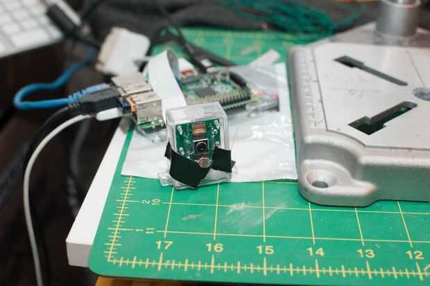 Hay una ventana en mi recinto de la cámara ver hacia fuera de la parte delantera. El caso de esta ventana protege a la cámara, pero tuve problemas donde el rojo led de la cámara (cuando está tomando una foto) refleja en el plexiglás y demuestra para arriba en la foto. Usé algunos cinta negra para mitigar esto y tratar de bloquear (y otros LEDs de la Pi y GPS), pero todavía no es 100%.