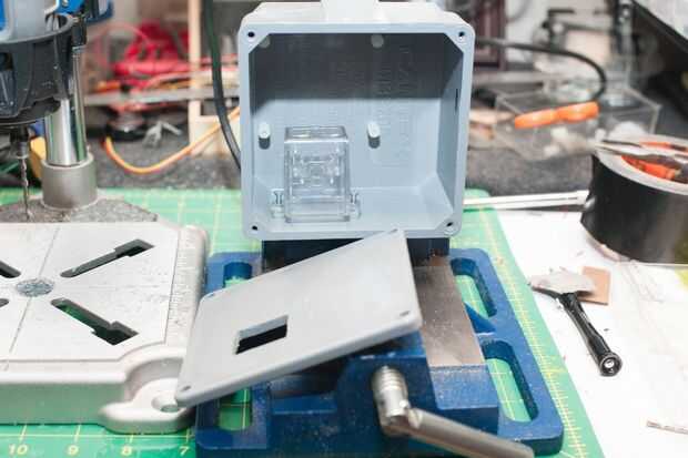 Elegir una caja, utilicé una caja de empalmes eléctricos, casos impermeables y varias cajas de proyecto funcionará igual de bien. Punto clave es que tiene suficiente espacio para todo.