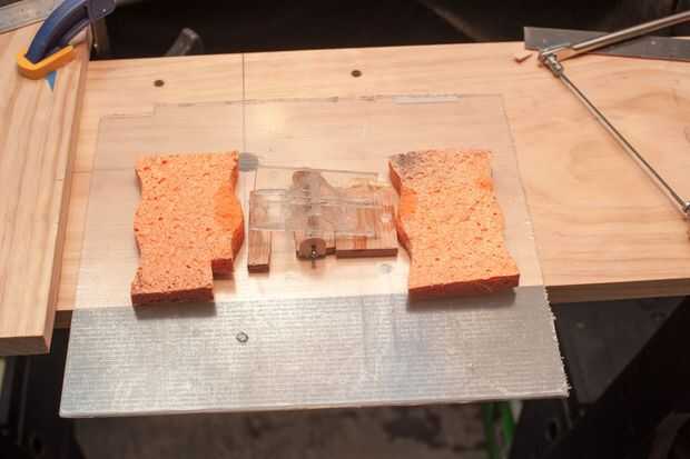 - Se puede ver en la foto que un poco configurar pruebas de perforación utilizando algunas esponjas y un soporte de madera para probar y hacerlo equilibrado correctamente antes de instalar.