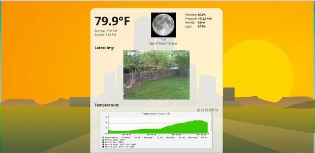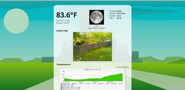 Utiliza la API de metro de tiempo para obtener algunos datos interesantes que no pueden tirar de sensores: registro de alta y bajas, tiempos de fase de la luna, puesta del sol y el amanecer, hay también las mareas en su API, que pensé que era realmente, pero yo vivo en Austin TX que está muy lejos del agua.