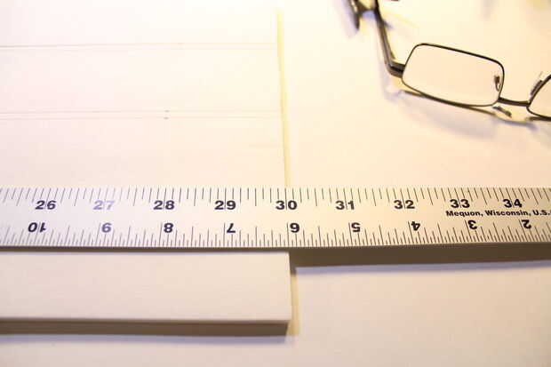 1. Comience con una hoja completa de cartón pluma que debe ser 30" de largo. Hacer marcas que son paralelas con la longitud de la Junta en estas: 1 13/16"- 2", 3 13/16"- 4" - 5 13/16"- 6" - 7 13/16". Consulte el Anexo 1 y fotos 2A, 2B. (ninguna pista por qué usé la exposición de la palabra cuando dibujaba estos planes: D) Repita en el otro lado del cartón pluma.