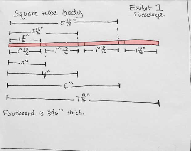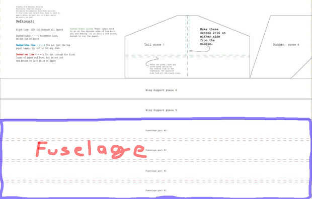 2. trazar líneas paralelas a la longitud de la tabla (30") a través de todas las marcas poco hiciste. Cuando haya terminado debe parecerse la sección azul "Fuselaje" en el cuadro 4.