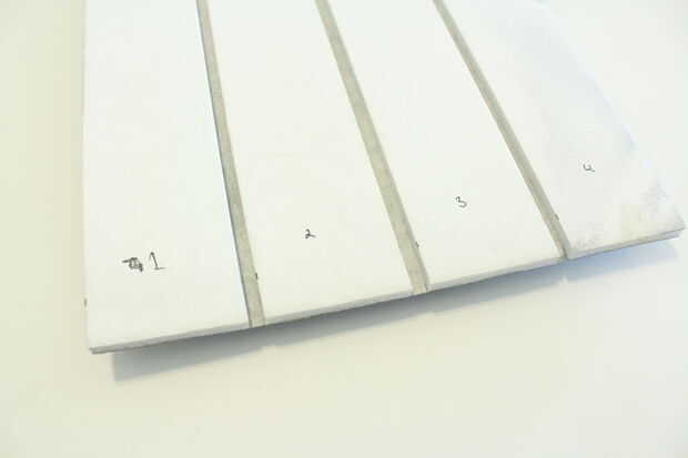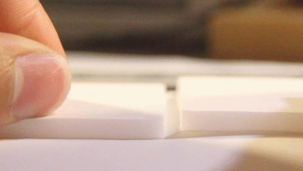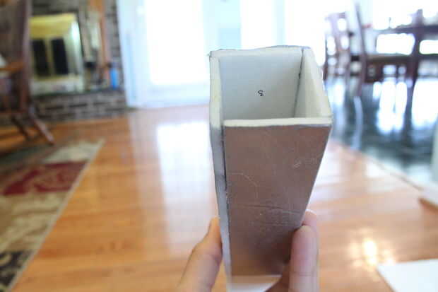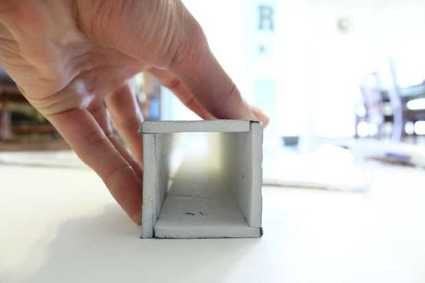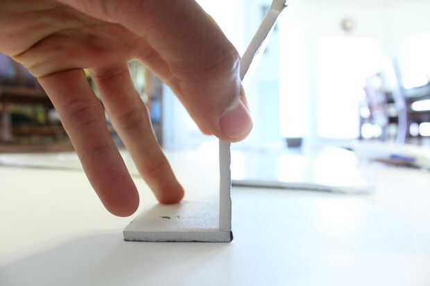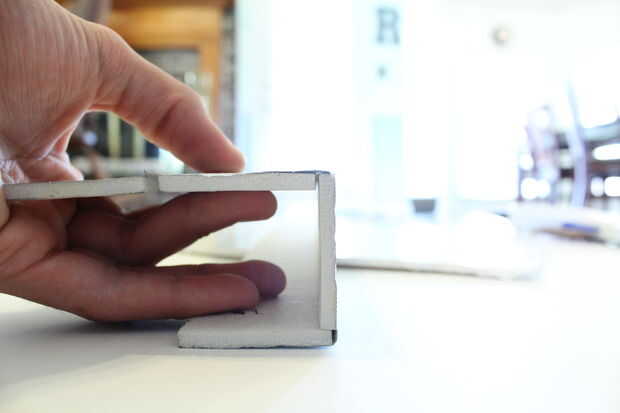 Llene cada crack con pegamento y pliegan en la parte superior la pieza anterior de foamboard. Ver imágenes 4A, 4B y 4C para referencia. Es más fácil si se utiliza un cuadrado para asegurarse de que cada pieza esté nivelada. El nivel más que haces, mejor calidad de su tubo será.
