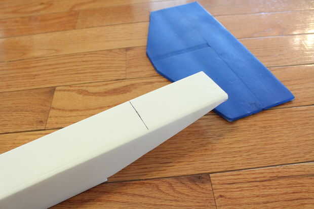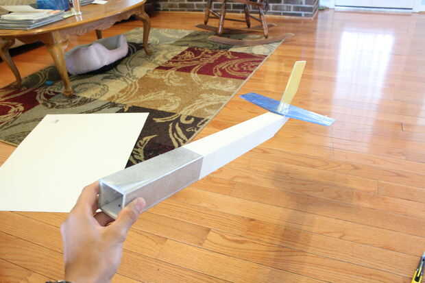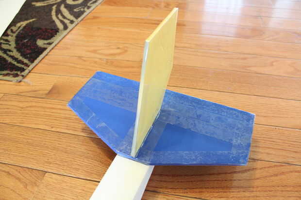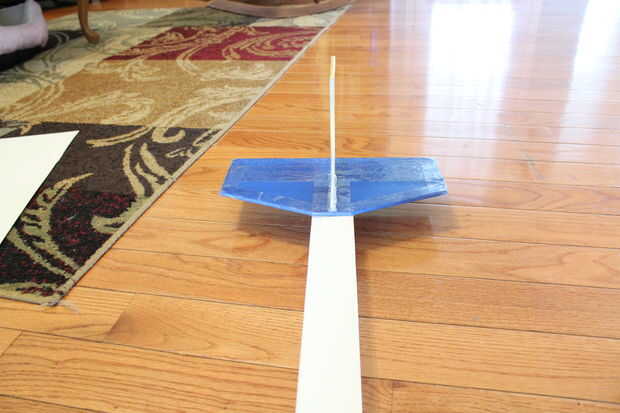 ¿Sigue conmigo? Pues bueno! Permite darse prisa y terminar el extremo posterior del plano! Desde muy atrás del fuselaje (el lado con la forma cónica) dibuja una línea que es 3 13/16" del final. Rellenar el área con el adhesivo caliente y presione sobre la horizontal en el fuselaje. Una vez más, verifique la alineación y todo es recto. ¡ Mira todas las fotos que ayudarán a explicar esto!