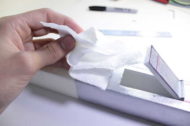 - Rellenar un pequeño taco de papel de cocina / servilletas en el frente. se harán 2 servilletas o una 1 pieza en medio de una toalla de papel.