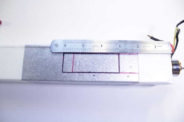 A pesar de que tenemos un tubo sólido agradable para un fuselaje debemos cortar en él para que podamos nuestra electrónica en él! En mi avión hizo dos portillas, uno para la batería/ESC y otro para el receptor. Deja comienzo con el primero.