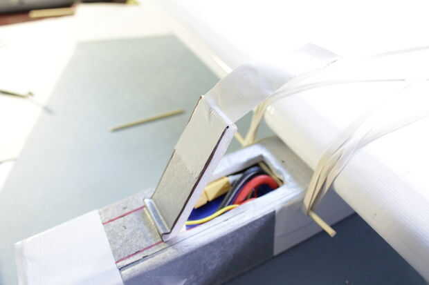 La ESC debe caer justo en el tubo y presione contra el lado del interior del fuselaje. La batería puede deslizar al lado como se muestra en la figura 3. Empuje la batería hasta en la nariz como se pueda. Debe compacta un poco la toalla de papel que coloca dentro antes.