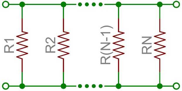 La resistencia de resistores en paralelo no es tan fácil. La resistencia total de resistencias en paralelo de N es la inversa de la suma de todas las resistencias inversas. Esta ecuación podría tener más sentido que esa última frase.