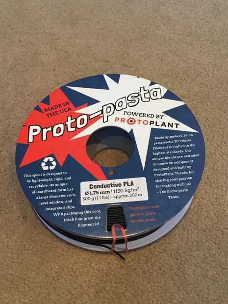 Para la soldadura y usé los rastros: filamento de impresora 3D PLA conductor. Lo compré de Proto-pasta. Enlace al producto (conductor PLA)
