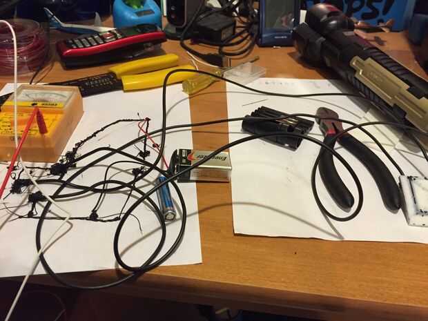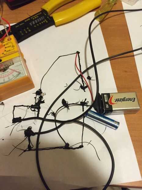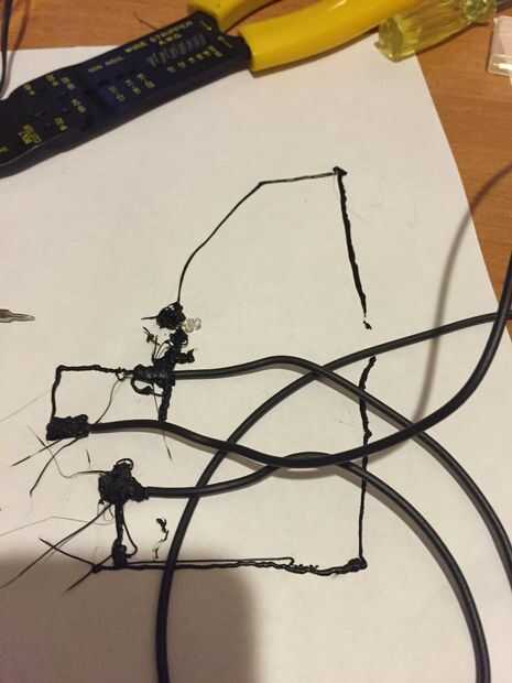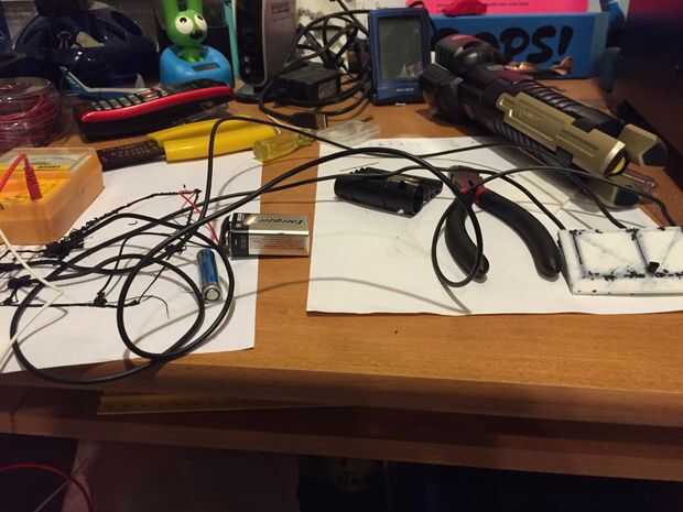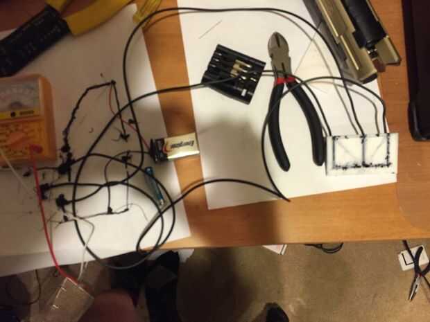 Como ustedes saben, mi creación fue un tablero de ruptura del transistor. No saber qué hacer con él, buscado interesantes circuitos y me encontré con algo que se llama un probador de transistores. Desoldar un LED de la cámara desechable y sacó algunos filamentos conductores en un pedazo de papel. El transistor es de la variedad de NPN, por lo que había sacado un circuito que enciende un LED cuando la base y el colector se conectaron por un material conductor como un dedo o un clip. Conecté el breakout junta al circuito extruido con alambre. Ahora, tal vez se pregunte por qué hay un LED de bajo voltaje conectado a una batería de 9v y el LED no se funde. Diseño de circuitos impresos 3D, debe pensar en la cantidad de resistencia eléctrica que del filamento tiene. Todas las marcas de filamento conductor tienen diferentes cantidades de resistencia. La resistencia de la marca Proto pasta que utilizo es 30 ohmios por cm.