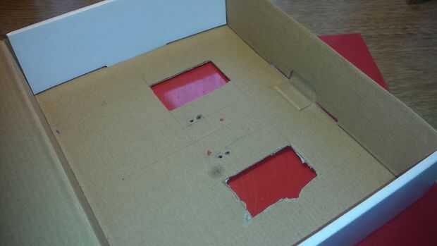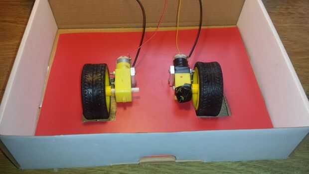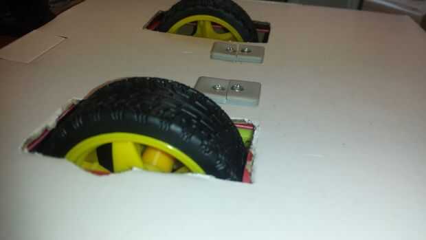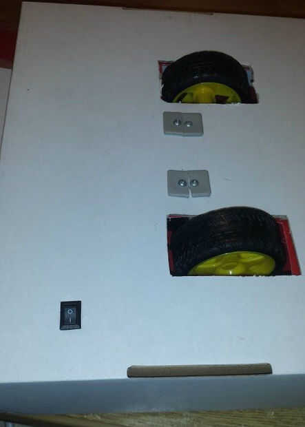 Yo Atornille los motores a la caja. Como el cartón no es muy resistente, he decidido añadir una lámina de plástico para reforzarlo. Esto no es totalmente necesario, pero creo que es mejor.