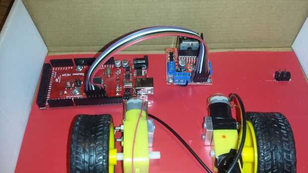 Había atornillado el arduino y el puente H para la parte inferior de la caja.
