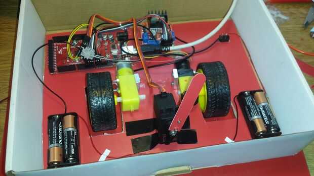 No conecte los cables positivo y negativo de servo a 5v y GND del Arduino. Es mejor si se les conectan a las pilas directamente.
