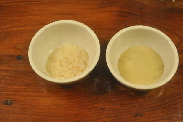 Finish and enjoy! La mejor manera de disfrutarlo es tener un aderezo cremoso (elegir Rancho) y pan rallado y poner de ellos en pequeños tazones de fuente pequeños. Luego, se puede sumergir el abrigo en la preparación y luego en las migas de pan. La preparación ayuda a las migas de pan se adhieren a la envoltura. Como el resto de la comida, es personalizable; pueden sumergir el rodillo en un montón de vestir o un poco y lo mismo con el pan rallado. ¡ Disfrute!