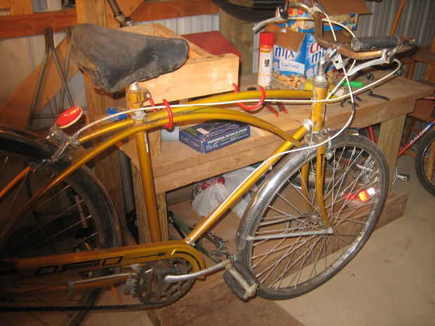 una bicicleta que he modificado en algunos aspectos. He instalado un sistema de engranaje que indirectamente multiplica el tamaño de las ruedas dentadas por los pedales en una bici normal. También tiene pedales que están varias veces superior a los p