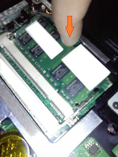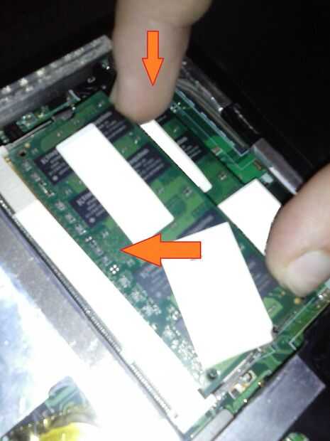 Inserte la parte inferior de la RAM en un ángulo y empuje hasta que clicks, luego repita con el espolón superior.