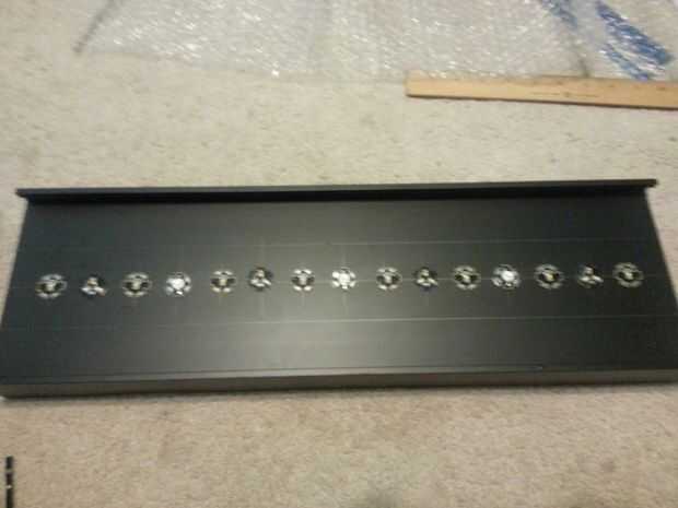 Ocho azul real se colocará en cada línea de 1 7/8". Repartirlos equitativamente (con criterio) para completar cada grupo circular. Asegúrese de que todos los LEDs se rotan idénticamente para el limpiador de cableado.