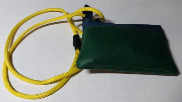 La bolsa es aproximadamente 2,5 x 4,25 pulgadas y tiene una cremallera superior y un lazo interior para sujetar las llaves. He adjuntado los elementos en la foto anterior a este lazo con el paracord. La brújula Silva se adjunta por separado para mantener libre del metal de la linterna mientras está en uso. Todo paquetes prolijamente dentro y el cordón breakaway convenientemente cuelga alrededor de su cuello. Esto pesa cerca de 5 onzas.