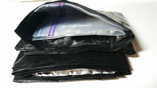 El kit de ajuste ligeramente incómodo en una bolsa de congelador pinta tamaño Zip Lock, por lo que para arriba-tamaño a un tamaño de 1 qt y doblar el exceso y envolverlas en el abrigo de un Velcro.