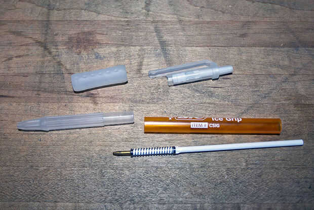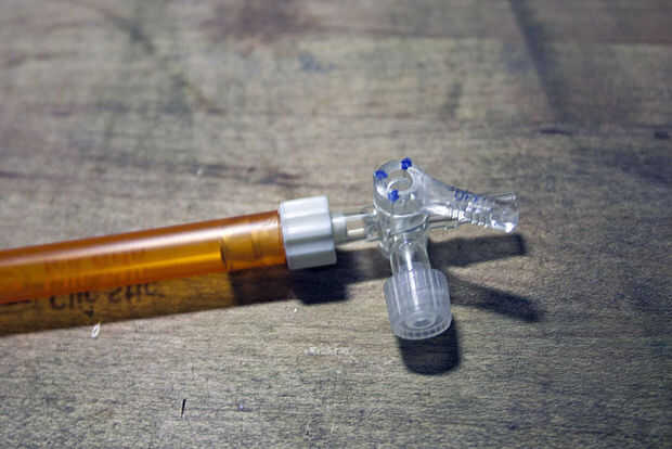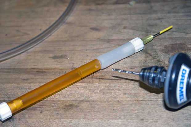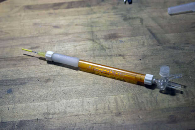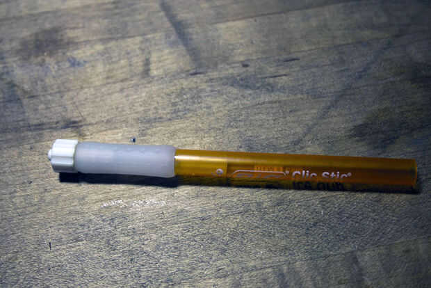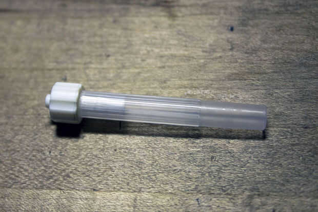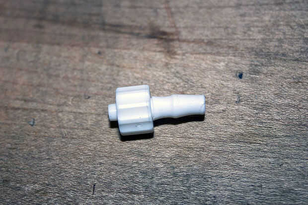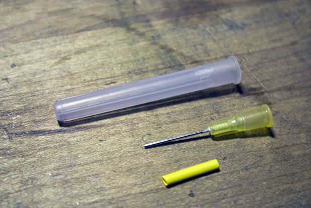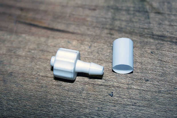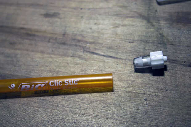 También necesitamos hacer una pluma con la aspiradora. Cualquier pluma barata con un cuerpo de tubo de plástico va a hacer muy bien. Mantener un puesto de observación para conectores tipo Luer lock, el estándar para las agujas de la jeringa. Vienen en muy útiles para muchas cosas. En este caso, hará sugerencias intercambio mucho más fácil. Pueden ser difíciles de encontrar; mi tienda local de sobra tenía en cantidad y resultaron para ser justo lo que recetó el doctor (gemido). Incluso he encontrado una válvula de cierre Luer para ajustar el flujo de aire, aunque resultó ser totalmente innecesaria, ya que queremos tanto vacío como podamos.