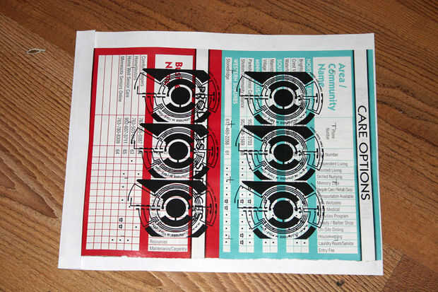 El papel es demasiado fino para correr a través de la impresora láser por sí mismo, por lo que necesitará hacer un portador de papel blanco normal plegado sobre y arrugando la parte superior de un lado.