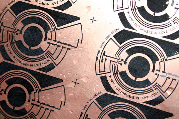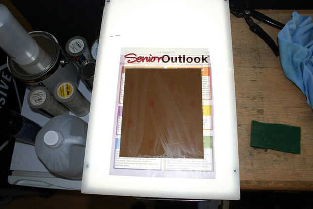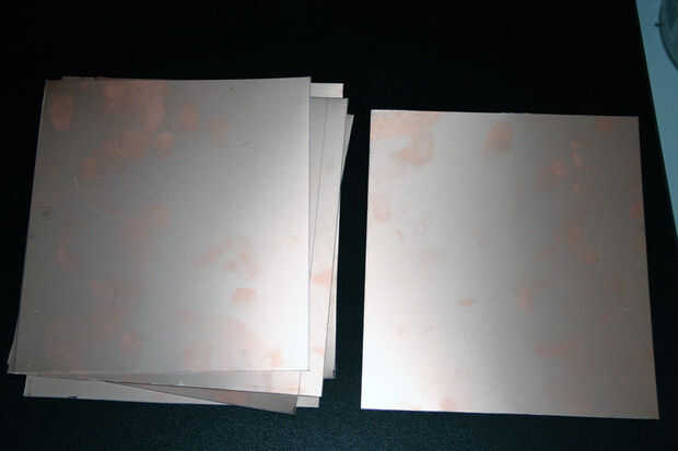 Para preparar la placa, usted encontrará que usted necesita tener muy limpio para que el tóner se adhiera al cobre. Incluso las huellas digitales se plantea un problema en la adherencia final, así que use guantes de algodón. Acetona o isopropílico ni incluso jabón y un fregado del cojín, trabajo. Cuando está limpia, límpiela con un paño libre de pelusa y dejar secar.