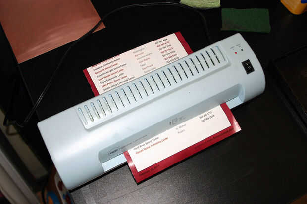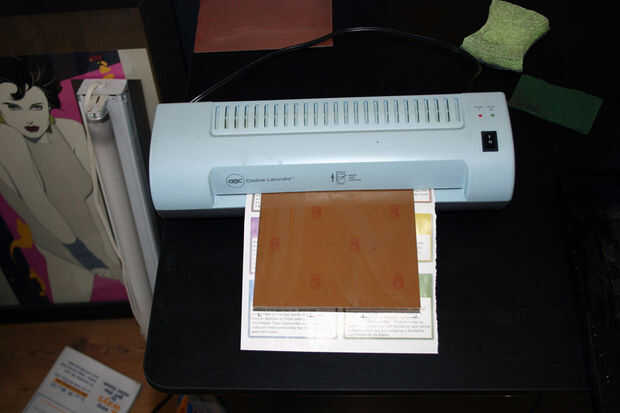 La Junta se tira a través de 1/4" por segundo. Generalmente corro lo aunque unas tres veces, sin tiempo para la Junta se enfríe entre pasadas. Por supuesto, el número de pasadas varía bastante dependiendo del grueso del tablero, el tipo de toner, tipo de papel y configuración del laminador. Guantes de algodón también ayudan a quitar la placa caliente del laminador.