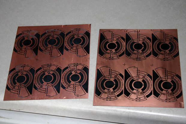 El PCB que tengo disponible es delgada FR4 va, en alrededor de.020 (20 mil), y eso es exactamente lo que quiero. PCB más fino no sólo pasa por la laminadora, pero puede ser translúcido PCB estándar