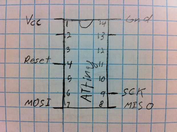 D11 al pin 7 en ATtiny