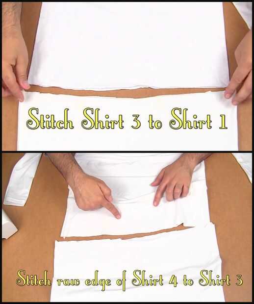 Coser la camisa 3 en la parte inferior de la camisa 1 (esta es la sección media)