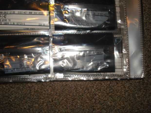 Cuando componentes enviados interior antiestático embolsado ya, a veces yo simplemente cortar y doblar el embalaje original en el tamaño de una tarjeta de visita e inserte en el tarjetero, en lugar de utilizar uno de mi 3M marca bolsos zip-lock.
