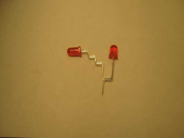 Decir que necesita 10 LEDs con la misma curva. En un pedazo de madera contrachapada, garantizar una parada la distancia necesaria entre la longitud de las mandíbulas de pinzas de punta de aguja. Coloque cada LED en la parada y el borde de tierra de pinza será la misma distancia para cada LED.