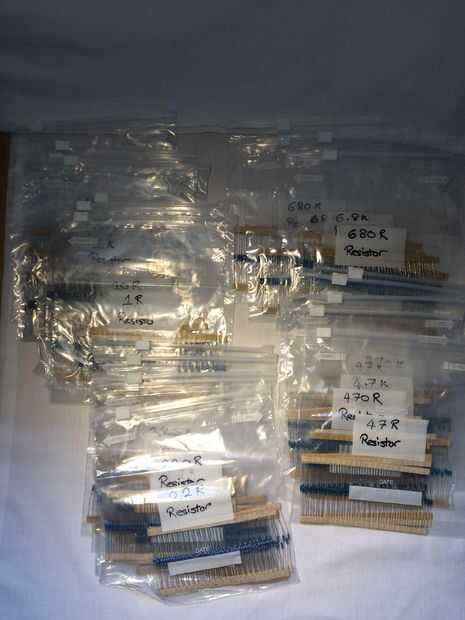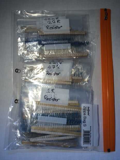 ¿Por lo tanto, tienes todo el lote de resistencias hecho? Buen trabajo. Ahora tomar las bolsitas, doblarlas bien y ponerlos en una carpeta. Aplasta hacia abajo y cierre la carpeta. Trabajo hecho. A menos que tenga más que resistencias poner alrededor!