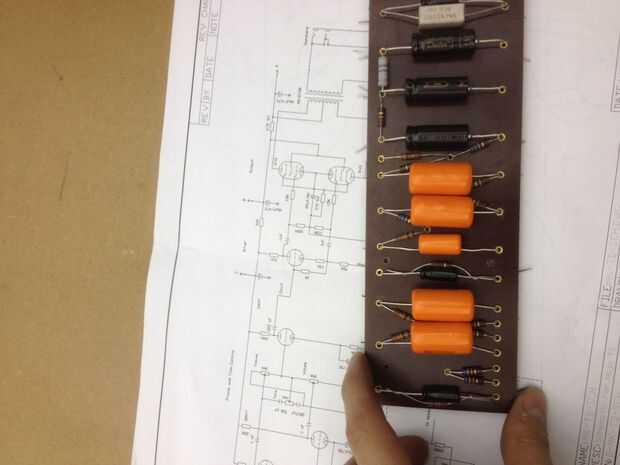 Componentes de montaje discreto en una placa de amplificador de guitarra (3 / 5 paso)