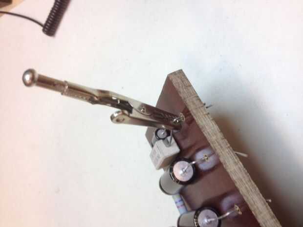 Hay otros tutoriales sobre correcta de soldadura para que no se zambullirá en eso ahora. Sólo siga el procedimiento y asegúrese de que tiene juntas de soldadura sólida buena. Tenga en cuenta que los pobres articulaciones pueden causar capacitancia. Esto puede afectar seriamente la calidad del sonido! Tómese el tiempo para hacerlo correctamente. Usé un disipador de calor (pinza) para evitar un sobrecalentamiento de los componentes. Esto no siempre es necesario, pero es una buena práctica.