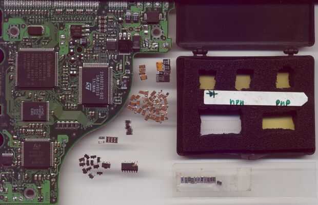 Luego calentar el alambre en un lugar central con su soldador y levante el componente a con una pinza. O empujarlo lejos usando un palillo de madera. No ser demasiado entusiasta con el pulsador o se operan a través de la habitación y perderse para siempre en la porquería que cubre el (en mi caso de todos modos) piso.