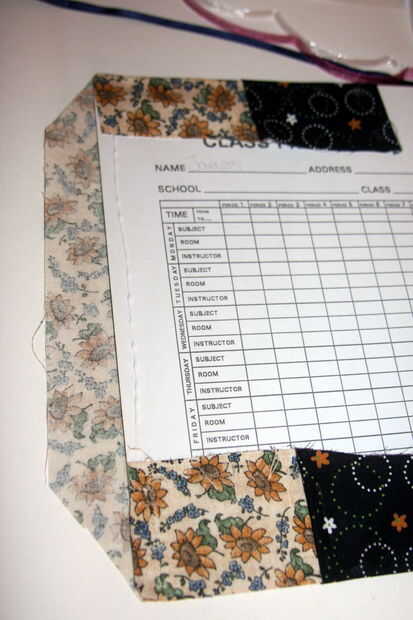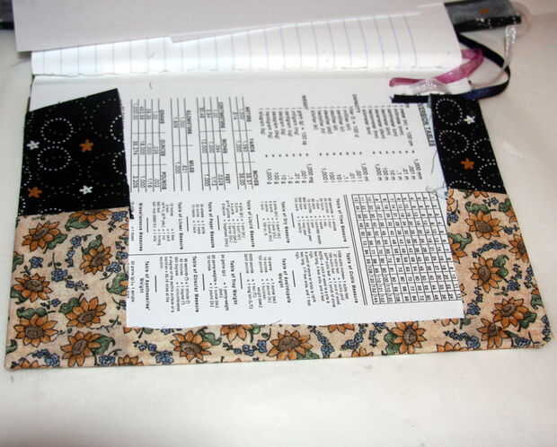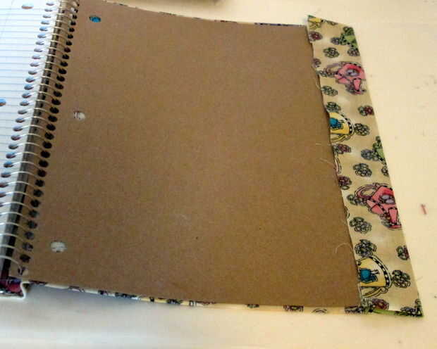 Cortar un trozo de cinta o tela alrededor de 2-3 pulgadas más largos que la medida de arriba a abajo (hacer esto antes de pegar hacia abajo de los guardas). Verifique su medición antes de pegar hacia abajo para ver la colocación y también para asegurarse de que la parte inferior borde sobresale bastante. Adhiera al menos 2 pulgadas de la cinta en la parte superior y cerca de la encuadernación espiral. Colocar el papel de extremo sobre la parte superior del marcador y los bordes.