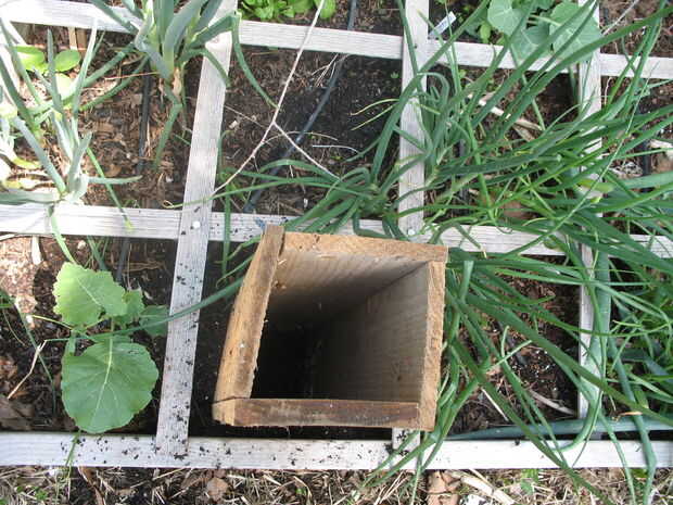 Coloque la caja en el orificio con la punta con los orificios hacia abajo
