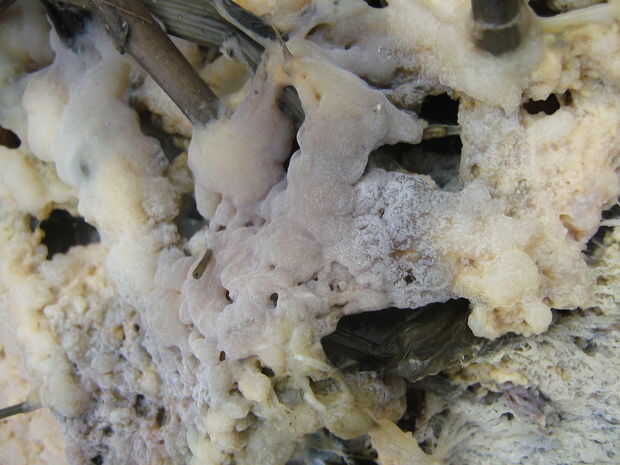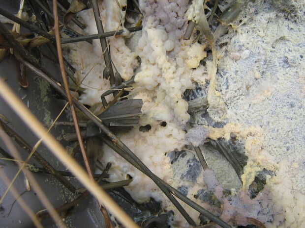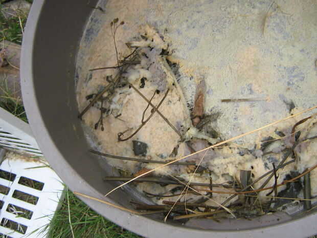 Aquí les dejo fotos de la escoria en la parte superior en sobre 13 agosto unos días después de una adición de cal hidratada.